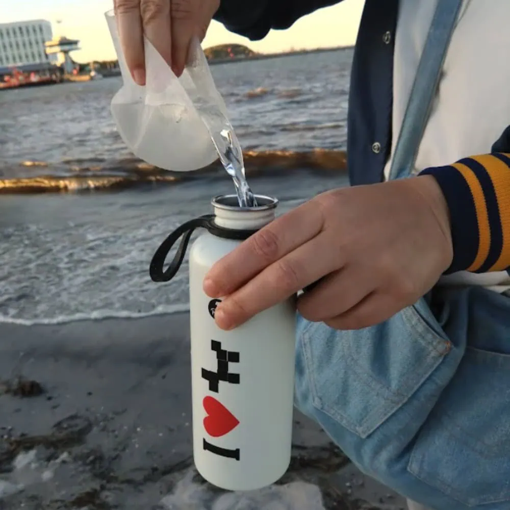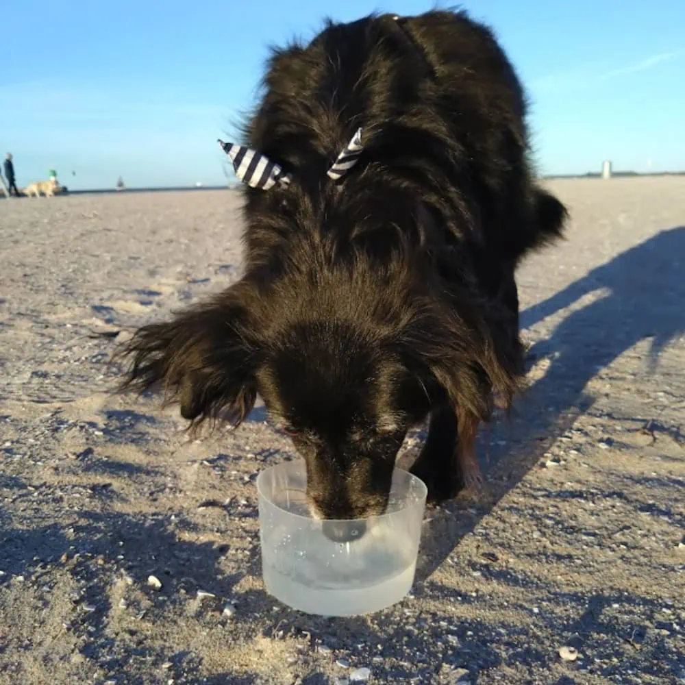 Der Napf ist nicht nur für Wasser, sondern auch für Lebensmittel geeignet und BPA-frei. Sein Fassungsvermögen ist ungefähr 400 ml. Was besonders praktisch ist: man kann restliches Wasser super einfach zurückschütten in die Flasche, da das flexible Material eine Schütte bildet.