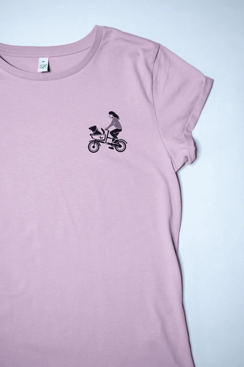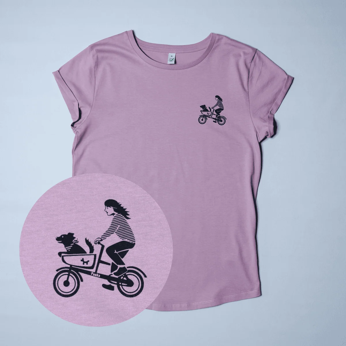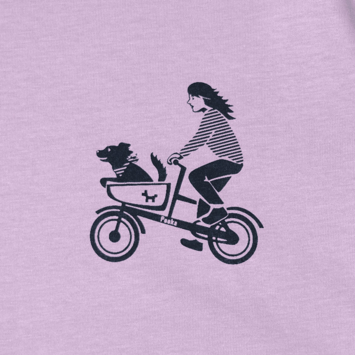 Auf die Brust habe ich mit Siebdruck das Hundetaxi-Motiv in Schwarz aufgedruckt, denn mit einem Hund auf dem Fahrrad hat man vier Beine mehr zum Strampeln.