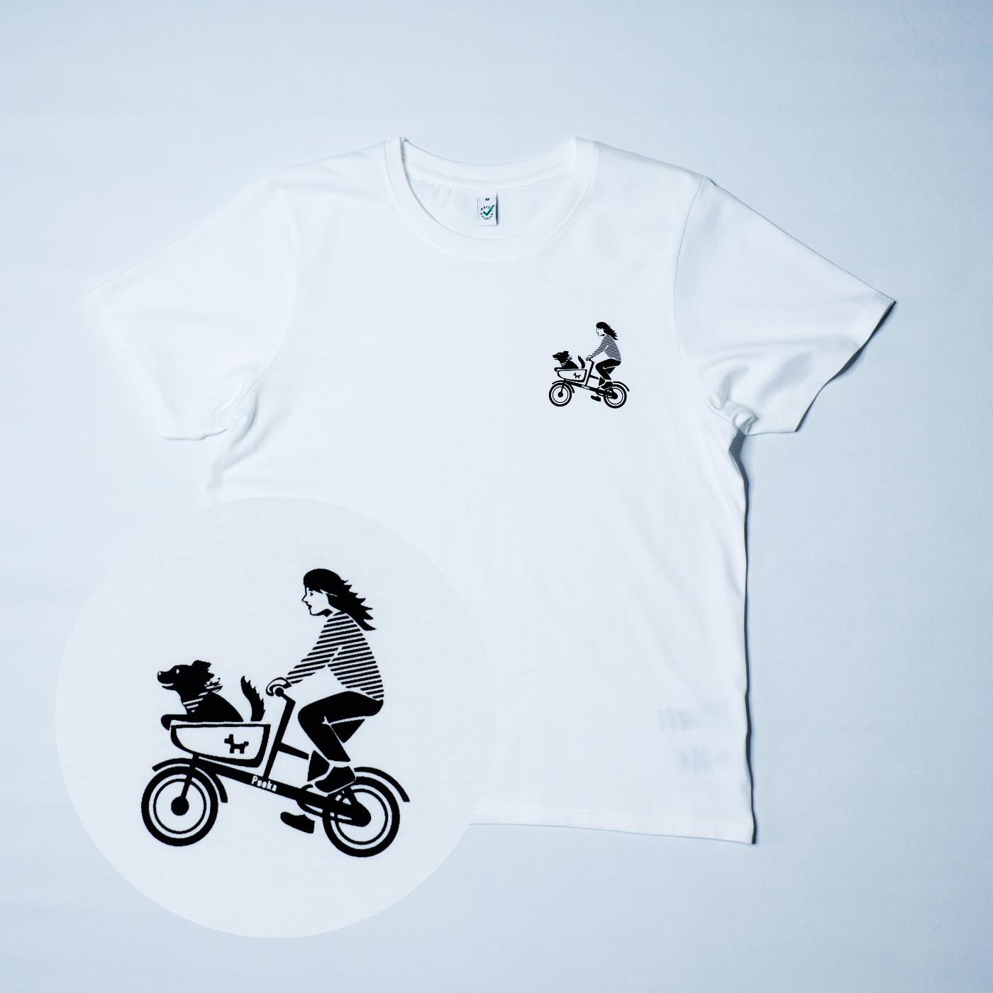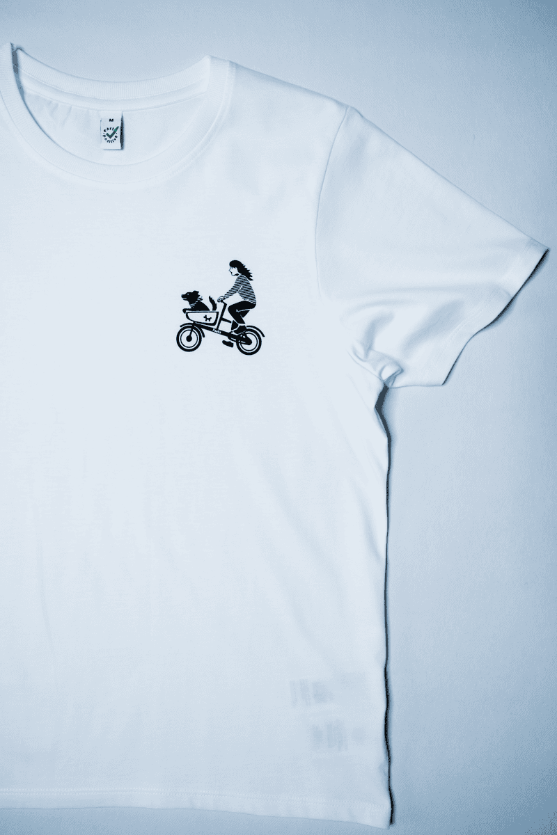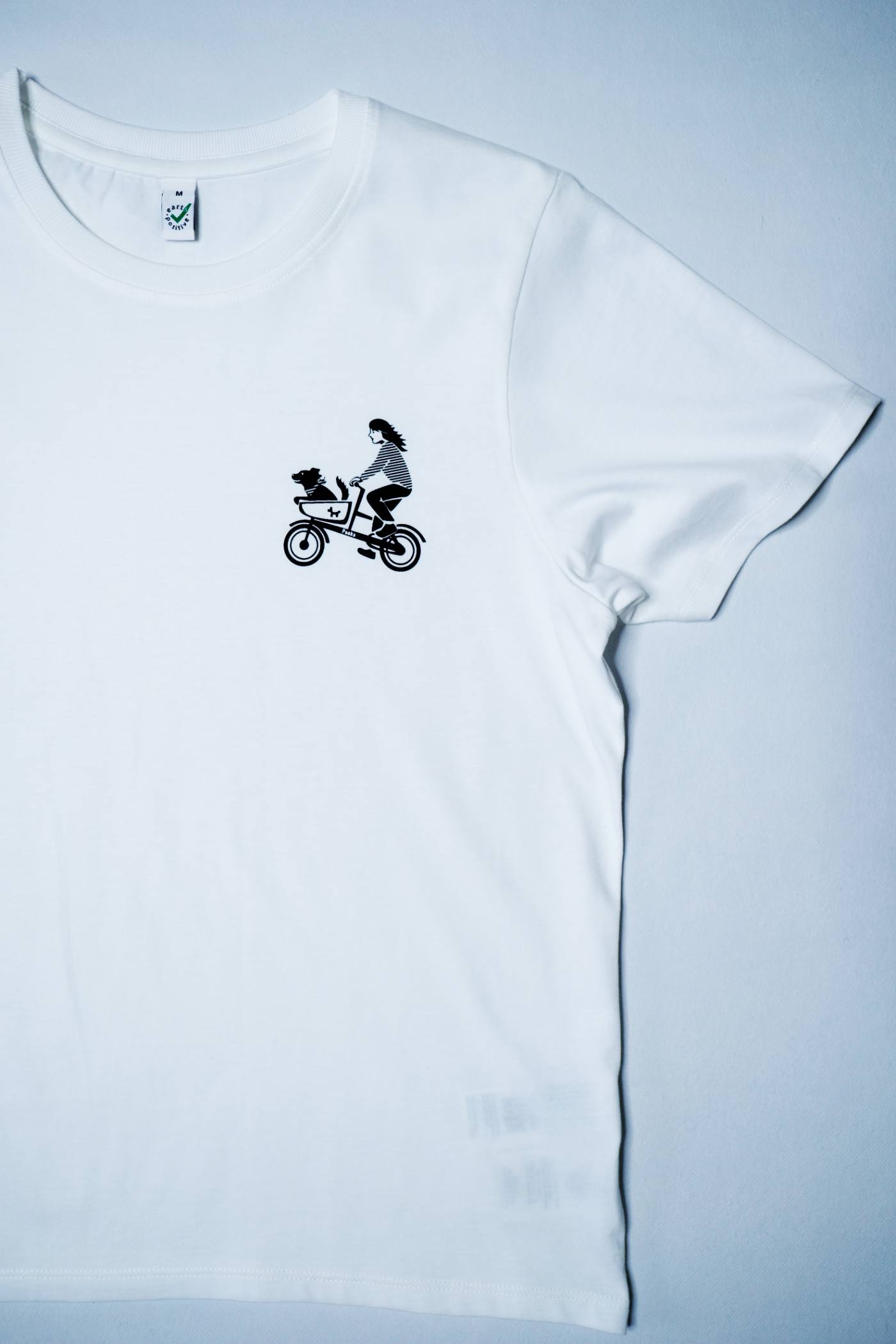 Auf die Brust habe ich mit Siebdruck das Hundetaxi-Motiv in Schwarz aufgedruckt. Das Shirt selbst ist weiß.