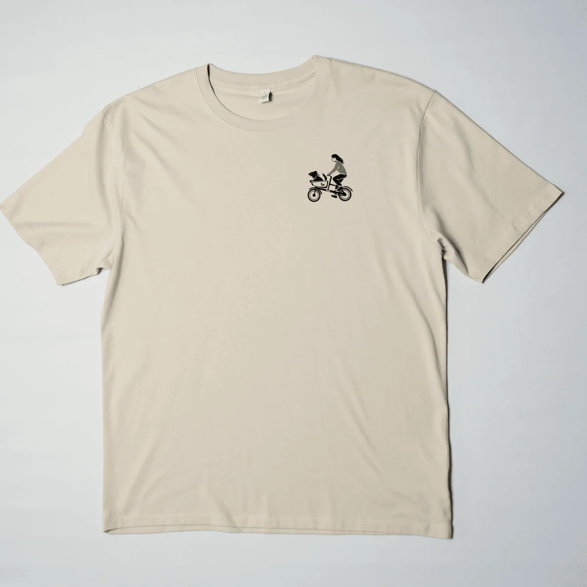 Das Shirt selbst ist in einem hellen Beige, ein Sand-Ton.