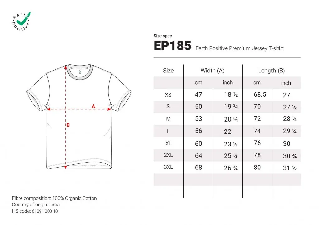 Klassisch geschnittenes Unisex- bzw. Herren-T-Shirt in toller Premium-Qualität von Earth Positive (EP185). Der weiche Jersey hat eine etwas dickere Qualität mit 185 g/m² und besteht aus 100 % Bio-Baumwolle. Das Shirt wurde fair in Indien produziert, ist vegan und bio-zertifiziert.